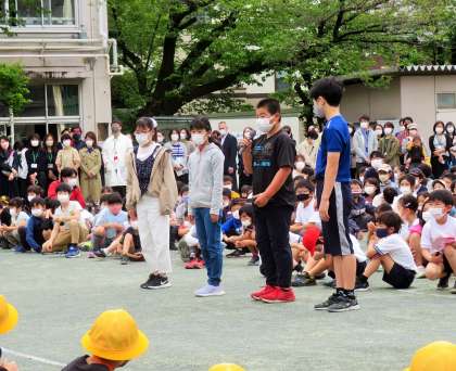 私からの言葉、そして、終りの言葉です。1年生はとっても立派でしたよ。これで正式に松丘小学校、全校児童の仲間入りです!
