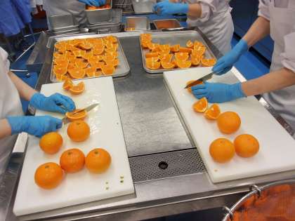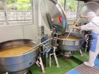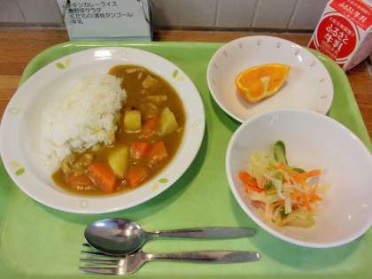 給食のカレーライスは、低学年と高学年で辛さを分けて作っています。