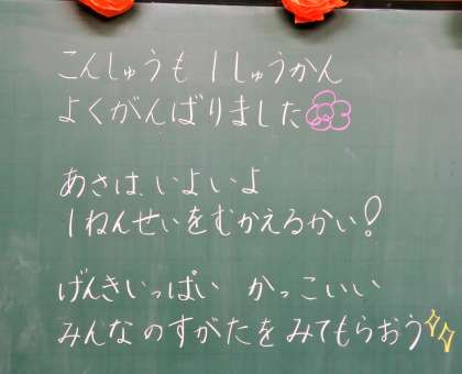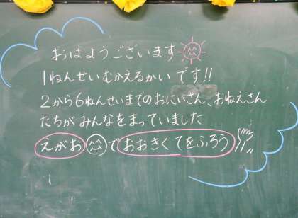 担任の先生からの温かいメッセージが、子どもたちを迎えていました。ここに紹介しているのは、その一部です。