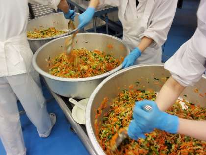今日の給食は、菜の花のからし和えを予定していました。