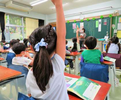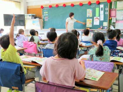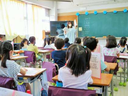 授業の様子をお届けします。一人一人の子どもたちが、しっかりと先生を注目して話を聞いています。