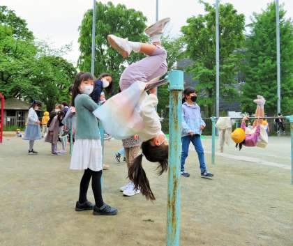 鉄棒などは、体が軽いこの時期に遊ぶことにより、どんどん技を身につけていくことができます!
