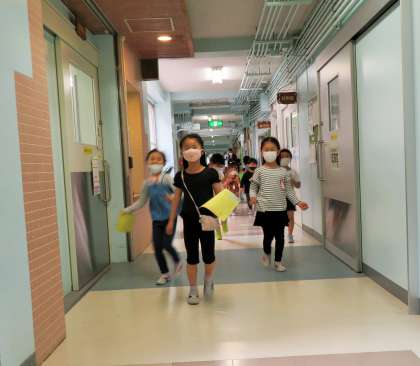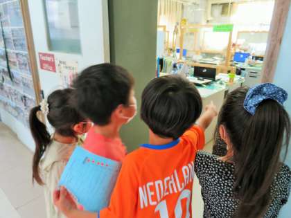 今日は2年生が、お兄さん、お姉さんとなり、1年生を学校探検(学校案内)に連れて歩きました。1年生をリードしながら、校長室、職員室、主事室、体育館、図書室、展望廊下など、それぞれの場所で案内をしました。