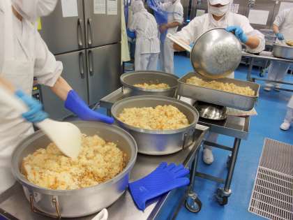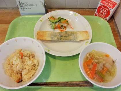 皆さんの成長を祝い、給食室では中華おこわを作りました。