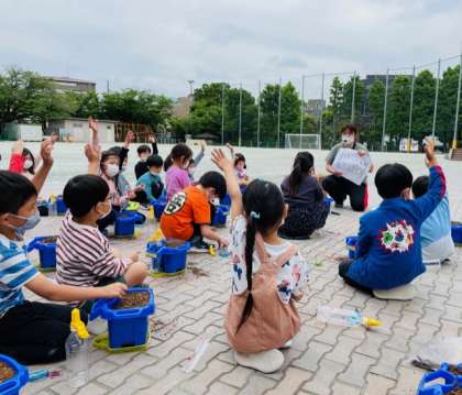 今日は、1年生が生活科の学習でアサガオの種をまきました。みんな丁寧にふわふわの土を入れ、愛おしそうに種をまいていました。最後に水やりをしました。