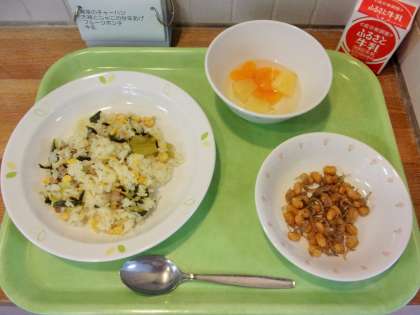 今日は、チャーハンにたくさんチンゲン菜が入っています。
