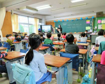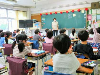 授業の様子をお届けします。一人一人の子どもたちが、しっかりと先生を注目して話を聞いています。