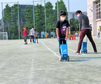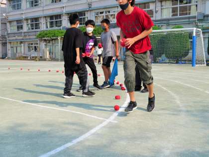 今日は練習日でない男子の子どもたちが、先生と一緒に校庭のラインを引いたり、コーンや赤玉を置いたりと女子選手たちの練習環境を整えています。仲間のために下働きができる、本当に気持ちのいい子どもたちです。