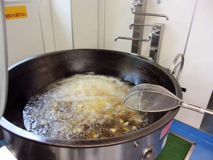 さつまいもはじっくり揚げると水分がとんで、外はカリカリ、中はホクホクに仕上がります。