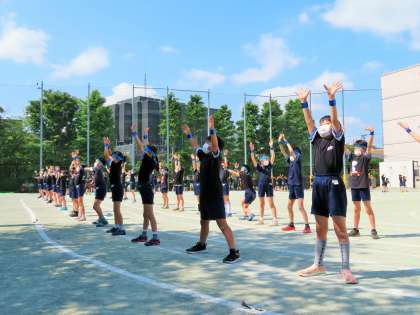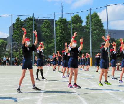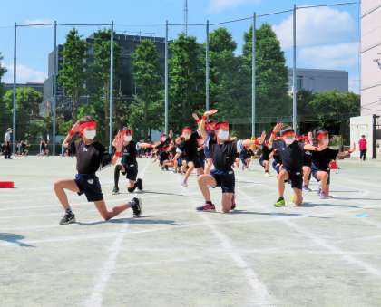 4年生の表現は「Oh!江戸!松小フェスティバル!〜鼓舞激励〜」です。実行委員やダンスリーダーを中心に、毎日練習を頑張っています。クラス毎に作成した纏(まとい)も完成し、今日は本番を意識した通し練習を行いました。