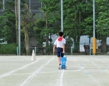 今日の「6年生選抜リレー」の朝練習はリハーサルです。今朝も早く集合した子どもたちが、先生と一緒に校庭のラインを引いたり、コーンや赤玉を置いたりと自分たちの練習環境を整えています。最高学年への意識が強く感じられ嬉しい気持ちでいっぱいです。