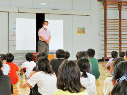 前校長の北村先生が風雨の強い中来校され、子どもたちの成長を喜んでいらっしゃいました。