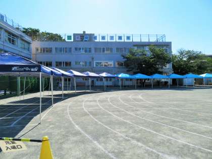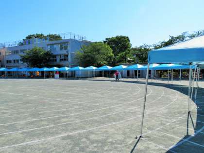 テントで児童席と保護者席(正面)を覆うことができました。学校のテントとPTAのテントを合わせて、4年計画でここまで準備することができました。