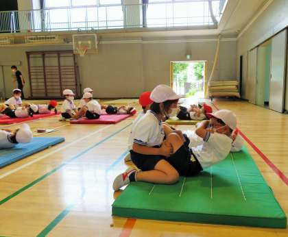 写真は、1年生「上体起こし」の様子です。