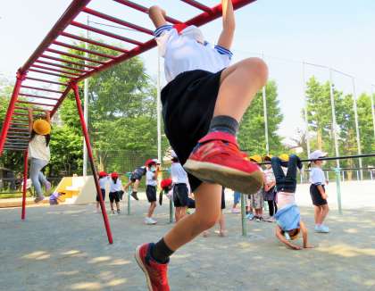 松丘小学校では「健康・体力づくり」の一環として、始業前の朝遊びに毎日取り組んでいきます。朝から「ワクワク!」「ドキドキ!」する感覚が、子どもたちの脳(前頭葉)にとってもいい刺激を与え、心の安定ともに授業での集中力がアップするのです。