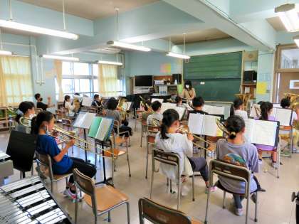 運動会において素敵な演奏を披露した金管バンドは、休む間もなく、新たな目標である「緑陰子ども会」に向けて、朝練習に取り組んでいます。