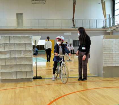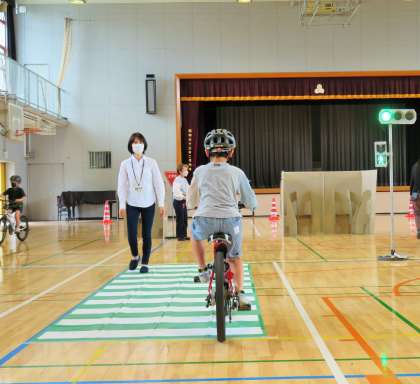 自転車の走行訓練を行いました。子どもたちが、ヘルメットを着用していましたので安心しました。子どもたちの交通事故で、一番多いのは自転車での事故です。安全が第一ですので、ヘルメットの着用を、ぜひお願いいたします。