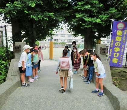 写真は、3年生「優郷の学び舎」あいさつ運動の様子です。