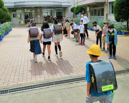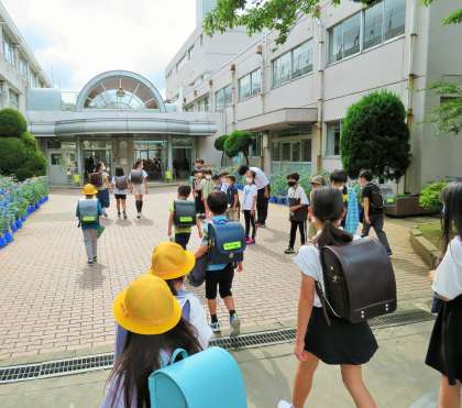 今日は「優郷の学び舎」あいさつ運動の3日目、最終日です。3年生が担当で、正門と南門に分かれ、登校して来る子どもたちへ気持ちのよいあいさつを投げ掛けてくれました。