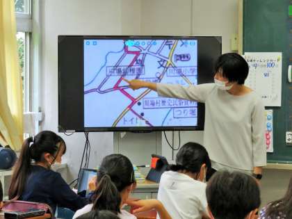 川場移動教室の村めぐりについて学習しています。