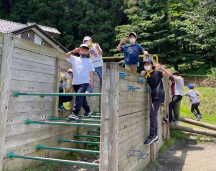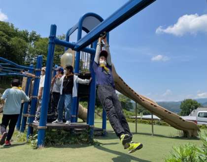 プレイゾーンには、様々なアスレチックやターザン、クライミングなどの遊具があり思いっきり遊んでいます!