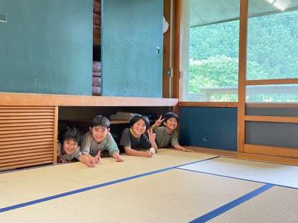 宿舎は大自然の中にあります。宿舎内は掃除が行き届いていて綺麗です。部屋の中もよく整頓して使っています。みんなとっても元気です!