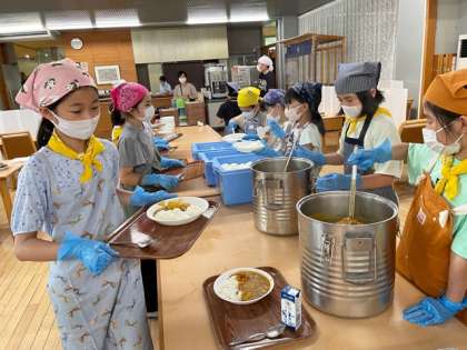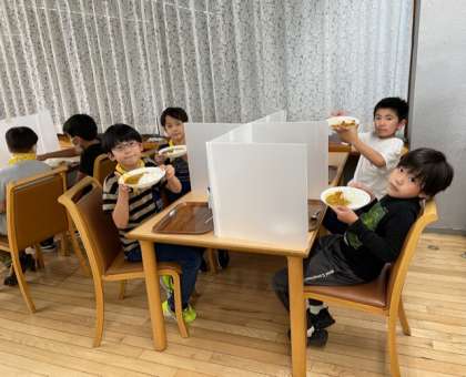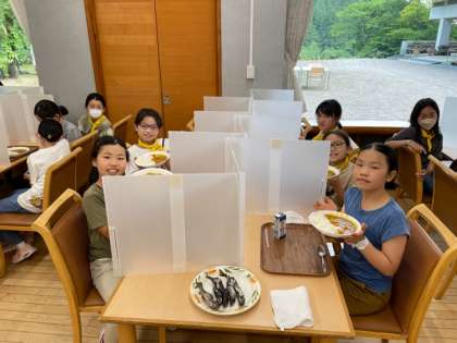夕食のカレーライスとニジマスの塩焼きを美味しくいただきました。みんな元気で食欲も旺盛です。
