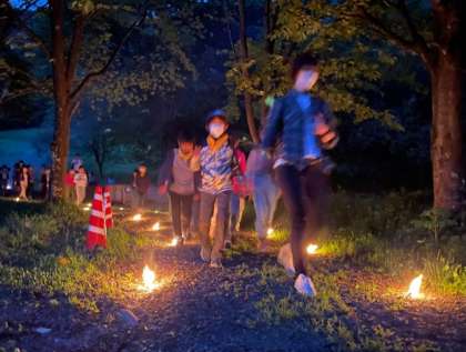 最後は、幻想的な星形を描いた火の粉に感動しながら、今日一日を振り返りました。そして、ファイヤーロードの中を退場しました!