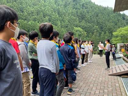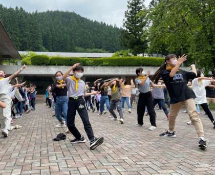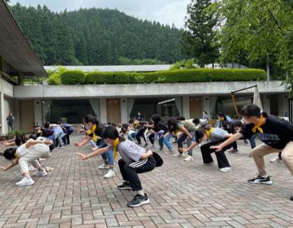 おはようございます。今日の天気は曇り、最高気温27度です。まずは朝会、体操としてソーラン節を踊りました。