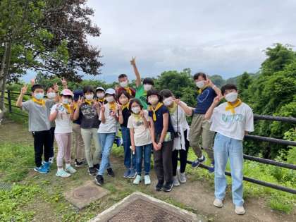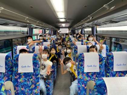 子どもたちは、みんな元気でDVD鑑賞を楽しんでいます。景色のよい場所で写真を撮影しました。もうすぐ川場です!