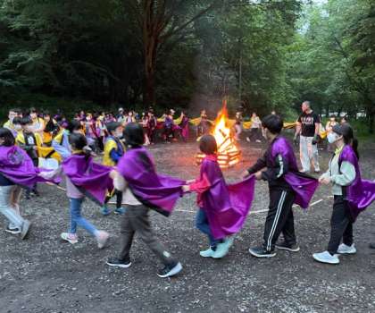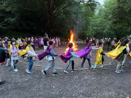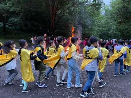 キャンプファイヤーは、歌やゲーム、全員でのダンス、ソーラン節などで、さらに盛り上がりました。