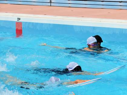 4年生になると泳力も向上してきます。伏し浮きもきれいな形ができている子が多くみられます。一つ一つの動作を習得して、水泳を楽しめるよう支援をしていきます。