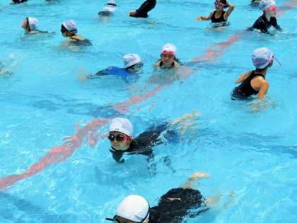 「クマさん歩き」をしたり「ウサギさん歩き」などをして、水遊びを楽しみました!