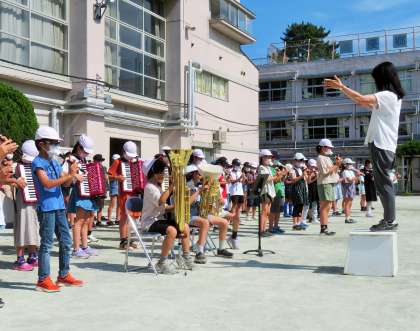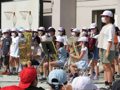5年生の発表は素晴らしい演奏でした。聴いている子どもたちや先生方、保護者の方々から、校庭いっぱいに響き渡る大きな拍手をいただきました。