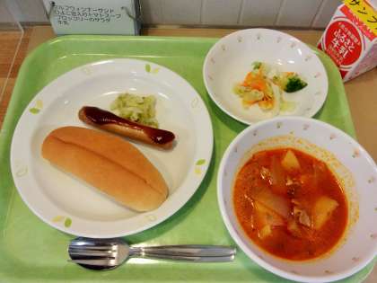 給食では、ブロッコリーの茎の部分もサラダに使っています。