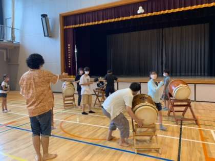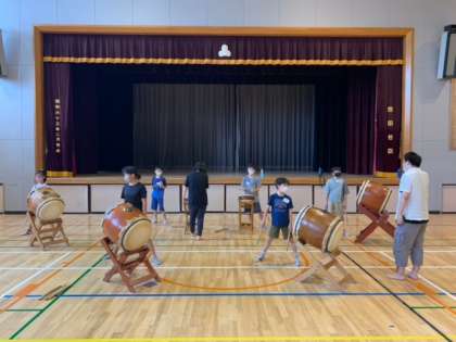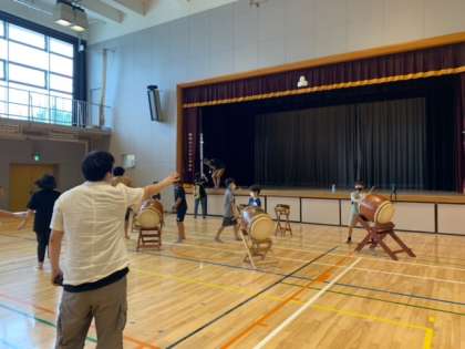 「緑陰子ども会」まであと3週間となり、たくさんの緑陰委員さんのサポートのもと、体育館でリハーサルを行いました。体育館では太鼓の音が大きく反響するため、問題なく演奏できるか、念入りに確認しました。