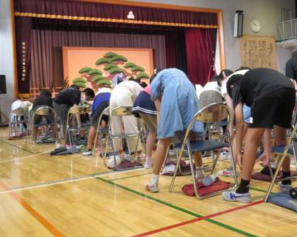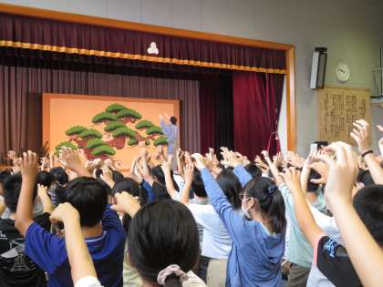 今日は6年生が、本校体育館を会場として、弦巻小学校の6年生とともに「古典芸能鑑賞教室」に参加しました。この古典芸能鑑賞教室は、世田谷区立小学校6年生を対象とした連合行事の1つです。ー昨年度は、新型コロナウイルス感染症への対応のため中止となりましたが、昨年度から学び舎を中心とした近隣校体育館を会場にする形式で実施されているものです。