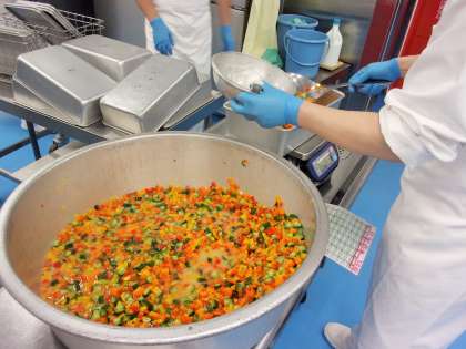 今日のサラダには、赤色と黄色のパプリカが入っています。