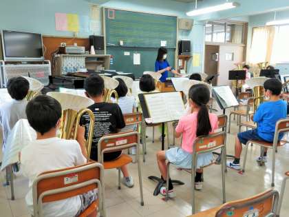 金管バンドは、新たな目標である「緑陰子ども会」に向けて、毎日の朝練習に取り組んでいます。