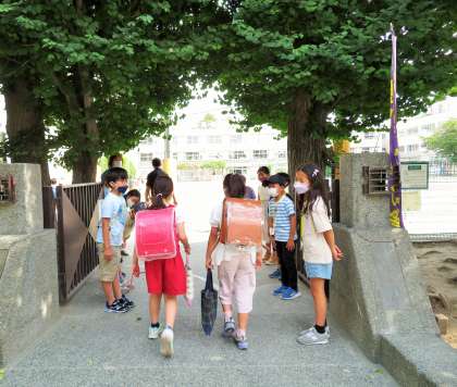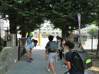 今日は「優郷の学び舎」あいさつ運動の3日目、最終日です。3年生が担当で、正門と南門に分かれ、登校して来る子どもたちへ気持ちのよいあいさつを投げ掛けてくれました。