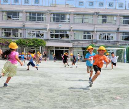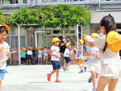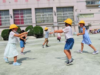今日は1年生が、生活科の学習で「水遊び」です。絶好のお天気で、ご家庭で用意していただいたペットボトルなどの容器を使って水遊びを楽しみました。