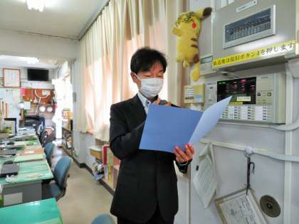 本日は始業前に、ブラン追悼お別れの会を行いました。私が学校を代表してブランへの手紙を読み、全員で1分間の黙とうを行いました。校長室前には、ブランを偲ぶ献花台を設置し、学級ごとに一人一人の子どもたちがブランとお別れをしました。