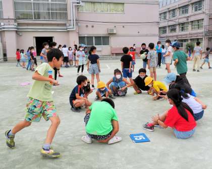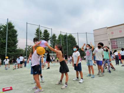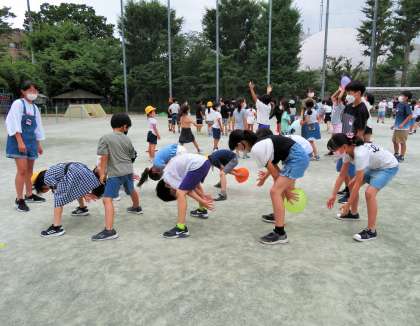 写真は、「ボール送り」で遊んでいる班の様子です。