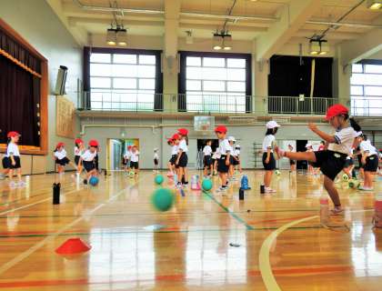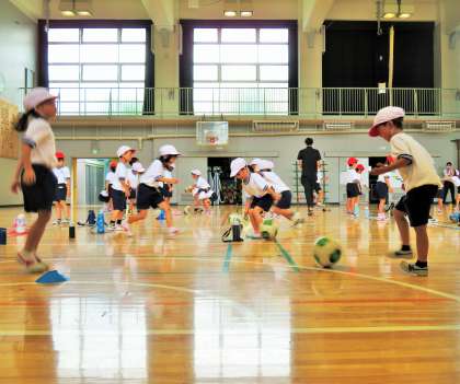 ボールを蹴りながら、子どもたちは楽しそうです!