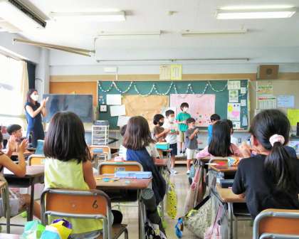 1学期にがんばった自分たちへのご褒美として、昨日今日と『お楽しみ会』を実施しているクラスがあります。校庭や体育館では、ボールを使った遊びや鬼ごっこ、教室では、お笑いやマジック、宝探し、室内ゲームなどを行っています。