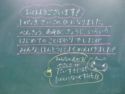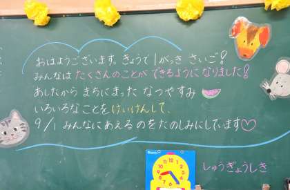 朝、子どもたちが登校してくると、担任の先生からのメッセージが黒板に!
