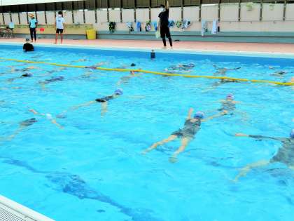今日から夏季水泳教室がはじまりました。今年度もコロナ対策として、蜜を避けるために例年の4分の1の人数で実施しています。さらに高学年ということもあり少人数ですので、検定にも何度も挑戦できて子どもたちは大喜びです。