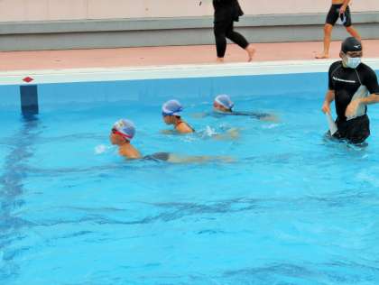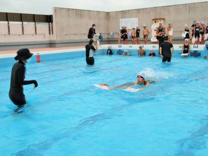 夏季水泳教室では、泳力別に検定を行っています。