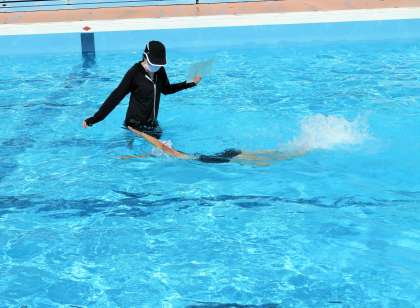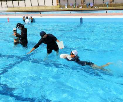 毎日10名を超える先生がプールに入っているので、グループごとにじっくり見てもらいながら検定試験ができます。