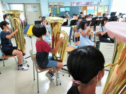 夏季休業中も金管バンド朝練習は、感染症拡大予防対策を実施しながら朝練習に取り組んでいます。